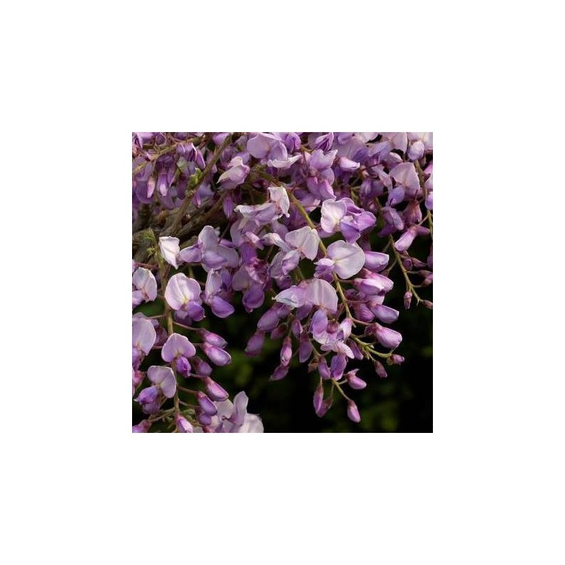 Liane vigoureuse bien connue, reine des balcons et autres pergolas ensoleillés ; floraison bleu mauve en longues grappes élégantes très spectaculaire au printemps, remontée légère au cours de l'été. Plantes issues de greffe pour une mise à fleurs plus rapide.