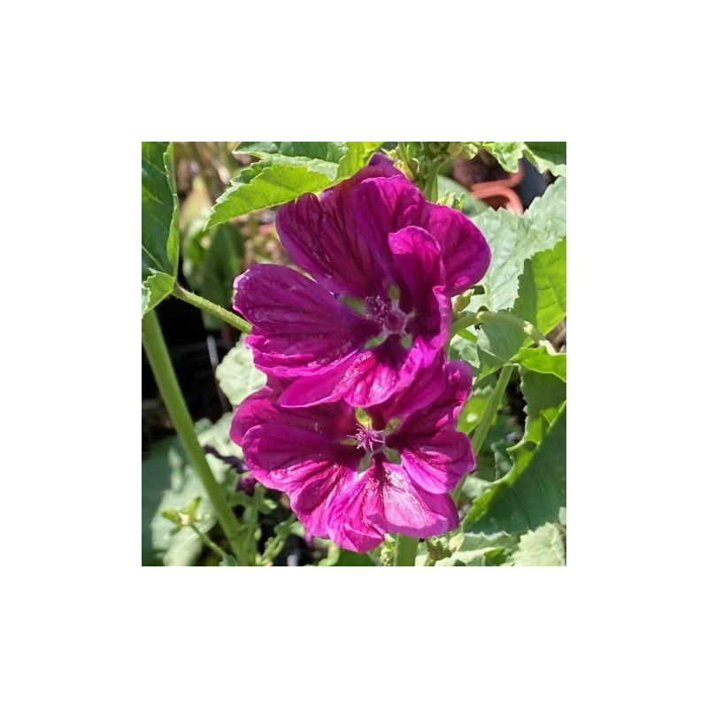 Grande mauve à grandes fleurs violet vif sur une longue période en été, bien rustique et vivace qui se ressème aisément.