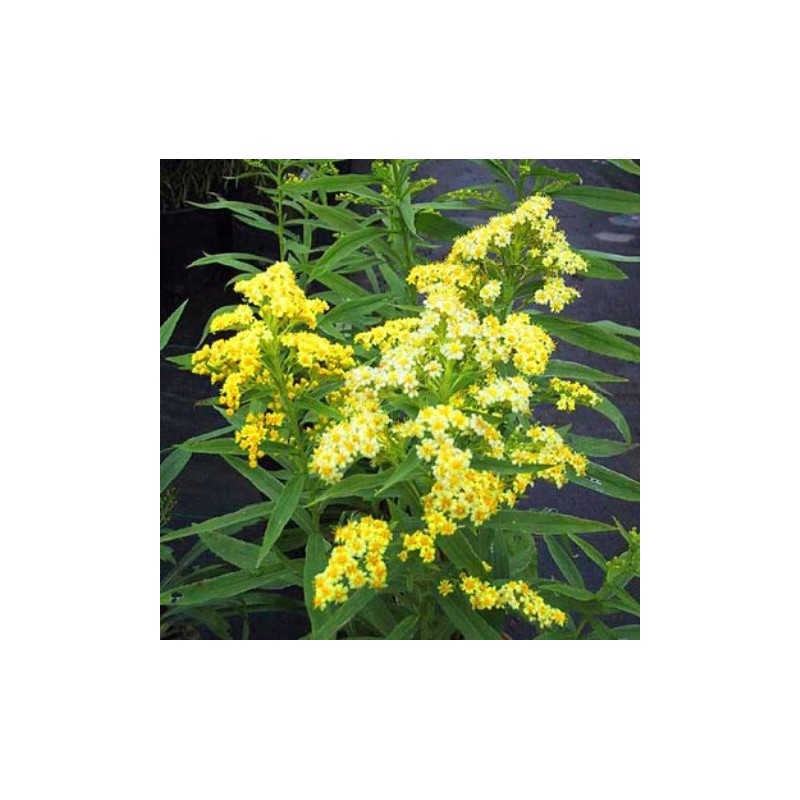 Hybride interspécifique entre un aster et un solidago ; grappes denses de petites fleurs jaune clair en été, pour une bonne terre de jardin pas trop sèche, soleil.