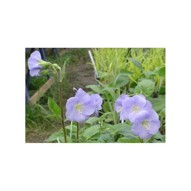 P.caeruleum x P.reptans) ; feuillage plus étroit que les autres espèces, fleurs bleu azur groupées en capitules ; refleurit plusieurs fois jusqu'en septembre en bonne terre de jardin, sol frais au soleil doux ou à mi-ombre.
